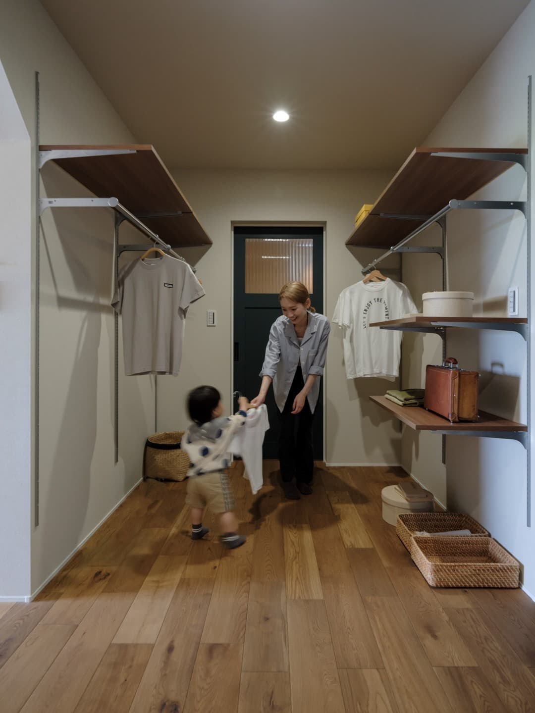 このお家では、ファミリークローゼットを“通り抜けできる動線”の中に配置。