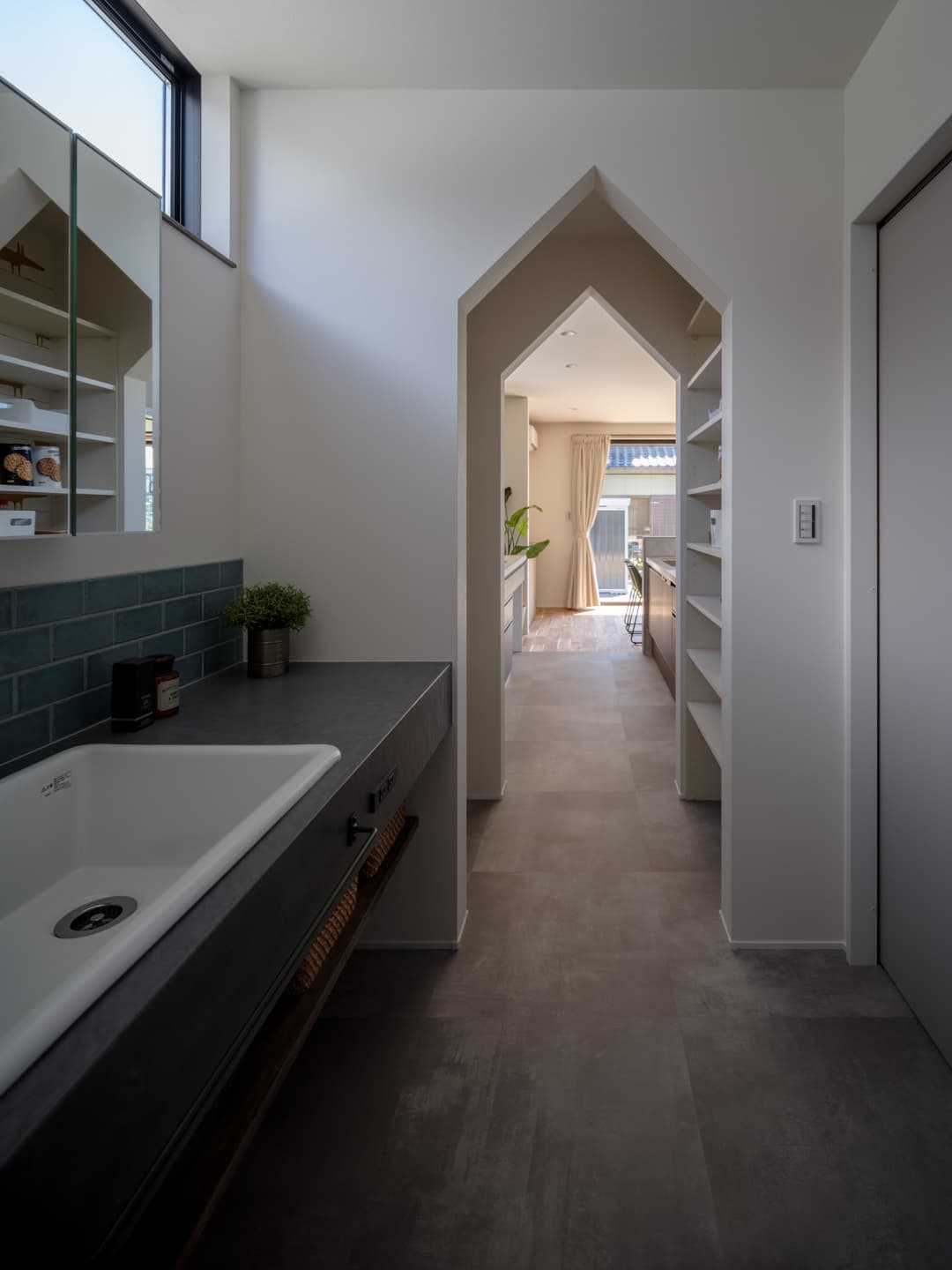 たとえば、キッチンから洗面室へとつながる動線上に配置することで、料理・洗濯・片付けといった日々の動きをスムーズに。行き止まりがない分、家の中を回遊できる間取りになり、無駄な移動を減らすことができます。