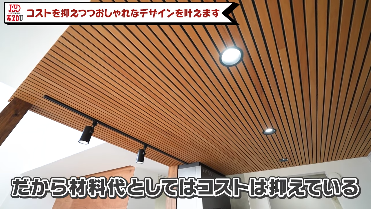 キッチンの天井はベニヤとパッキンでコストダウン【06:10】