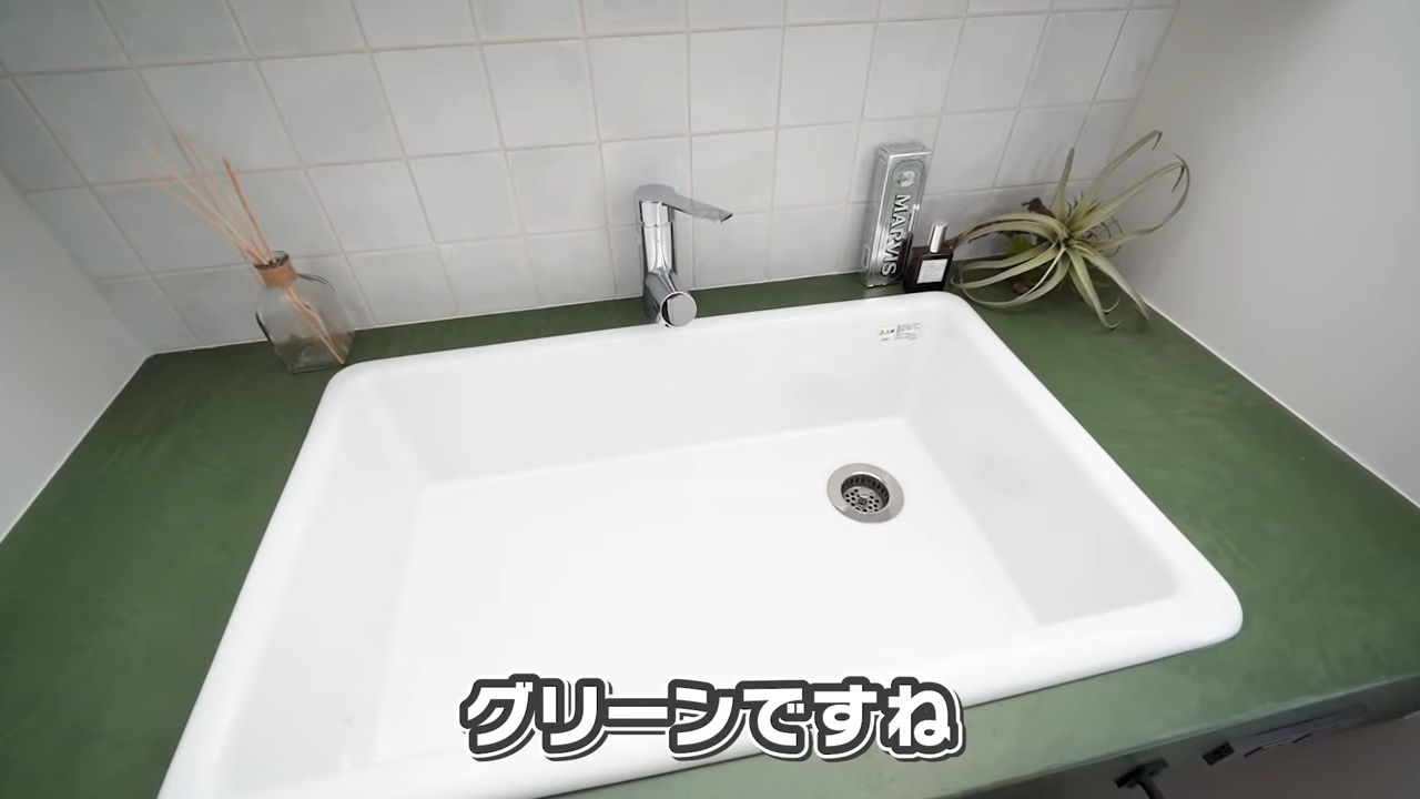 タイル×グリーンが可愛いモールテックス洗面【07:45】