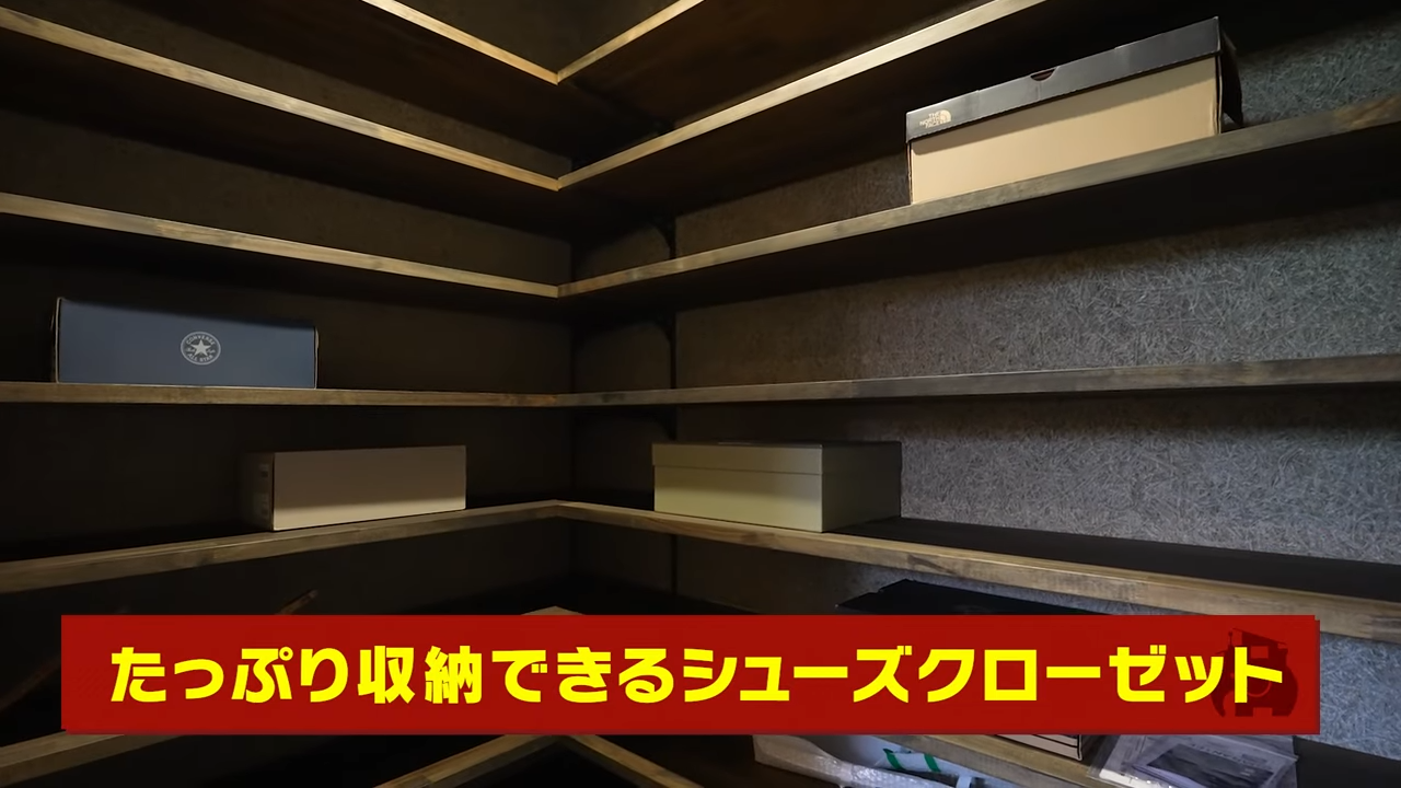 壁はおしゃれな木毛版!大きなシューズクローゼット
