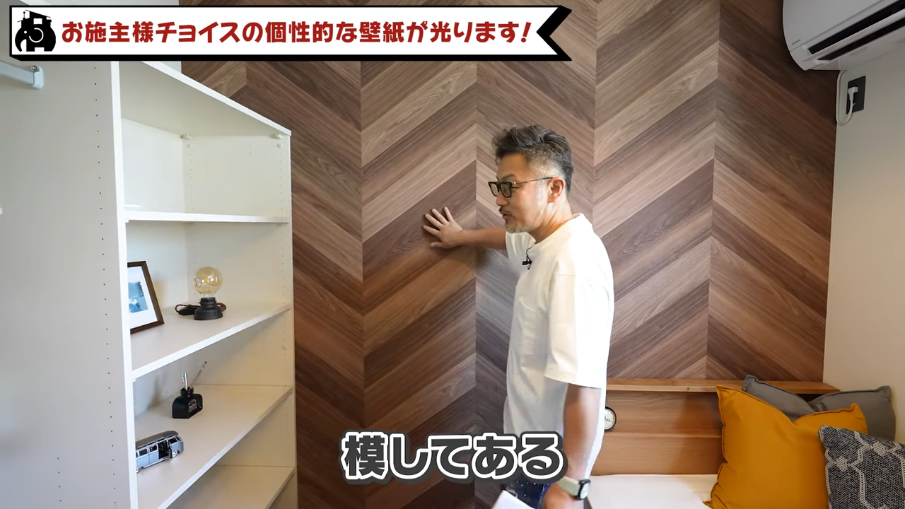 床は、内装に合わせた斜め張り。ここも存在感のあるデザインになっていますね。