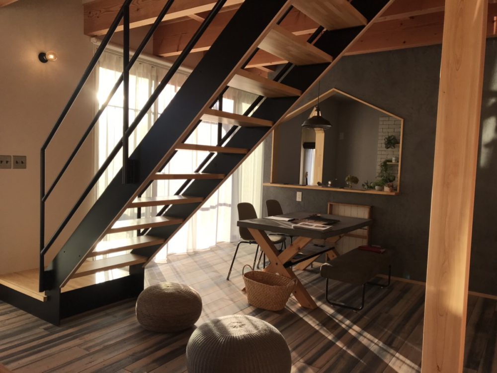 キッチンと手前に広がるリビングのちょうど真ん中にある階段は家ZOU得意のアイアン使い(^▽^)/
