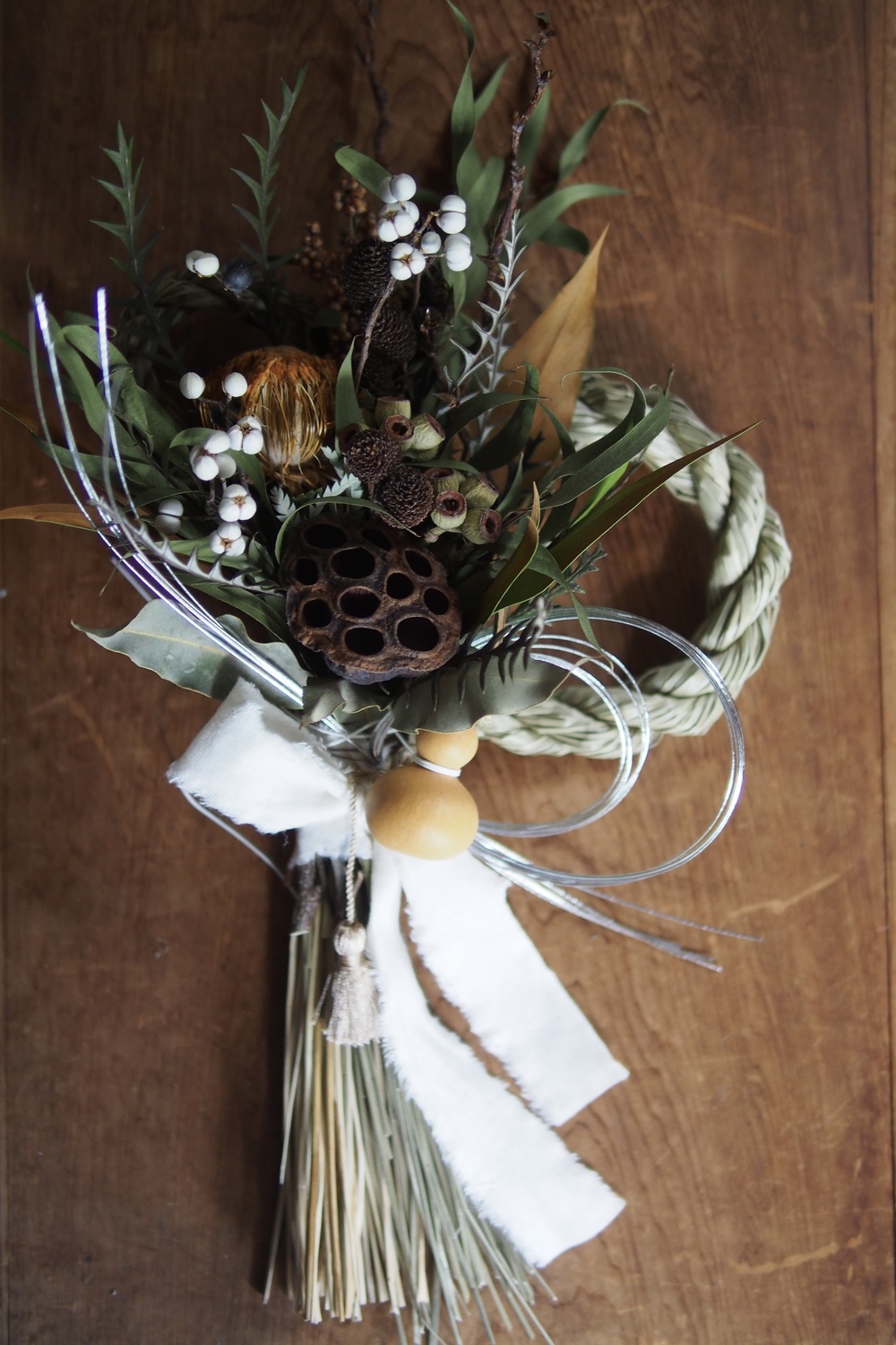 長く飾れるドライフラワー を使って、お正月のお飾りを作ります。