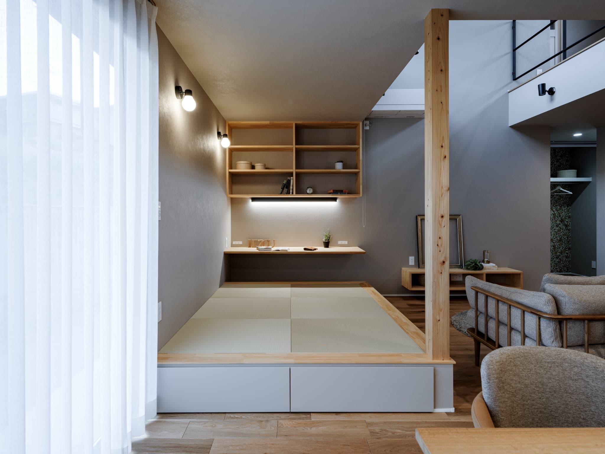 (奥様)実際に住み始めて半年。「とにかく快適!」の一言に尽きます。特に2階の「渡り廊下」のようなスペースがお気に入りです。