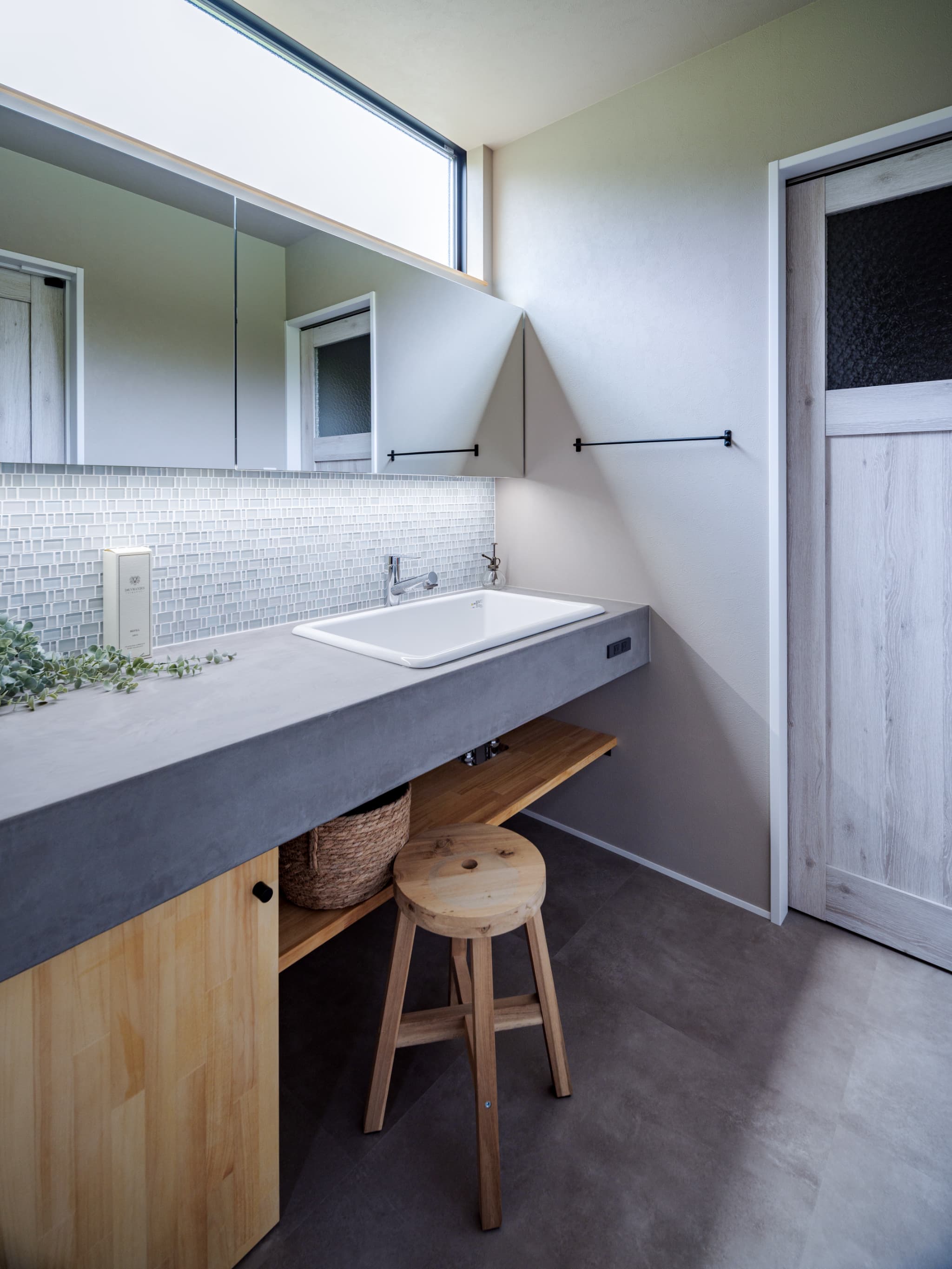 (奥様)私は毎朝使う洗面スペースを「ホテルライクな空間にしたい」と伝えました。鏡を通常より大きくして、上下に間接照明を仕込んでもらったのですが、この照明の雰囲気がもう最高に好きなんです!