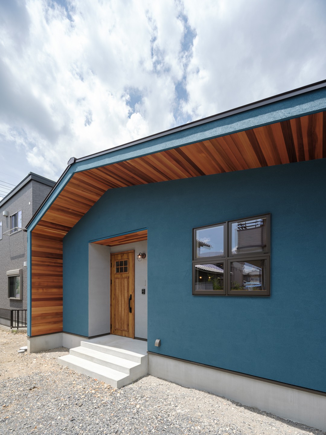 ターコイズブルー×グレーの塗り壁