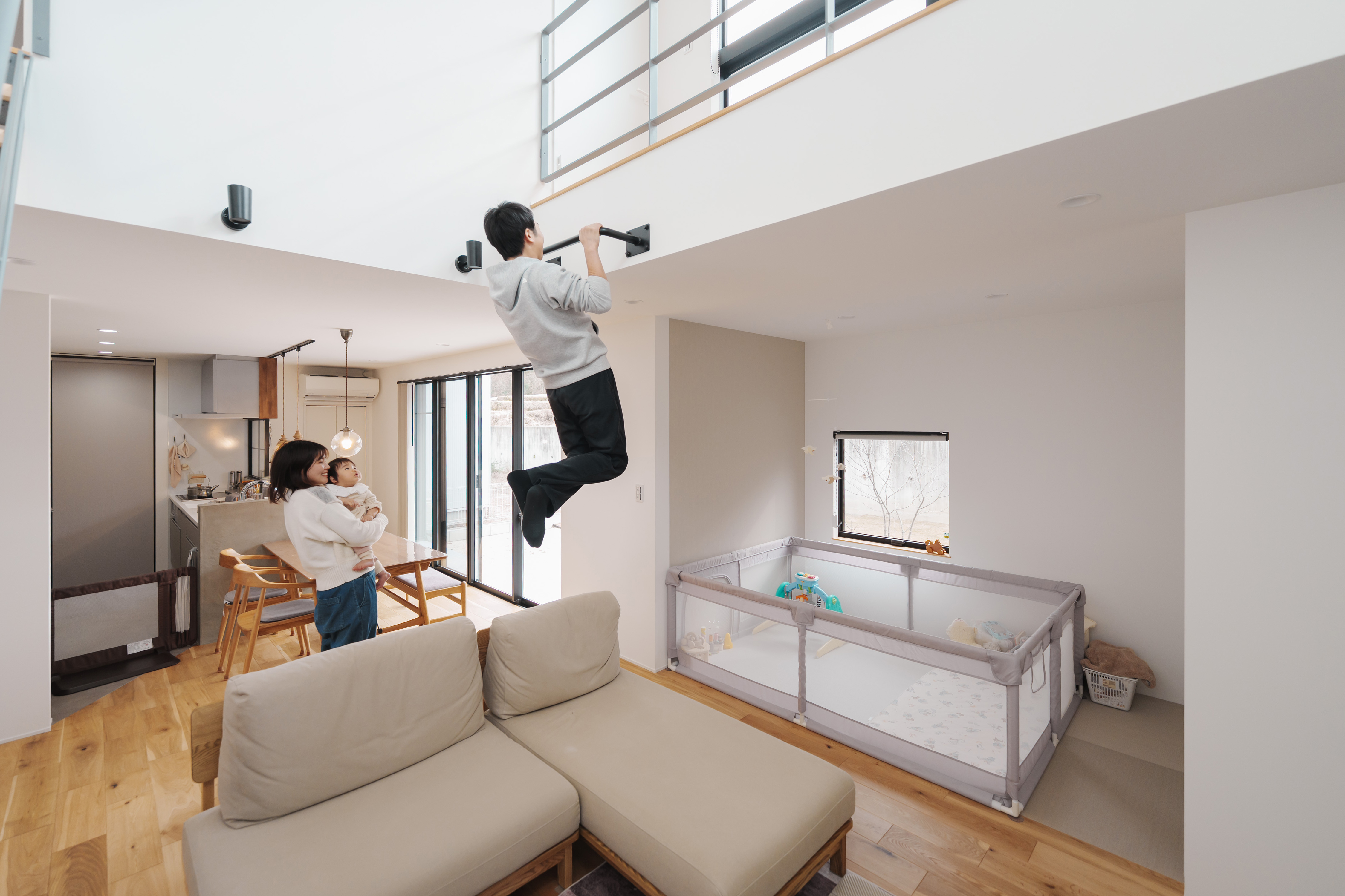 懸垂バー付き吹抜け空間