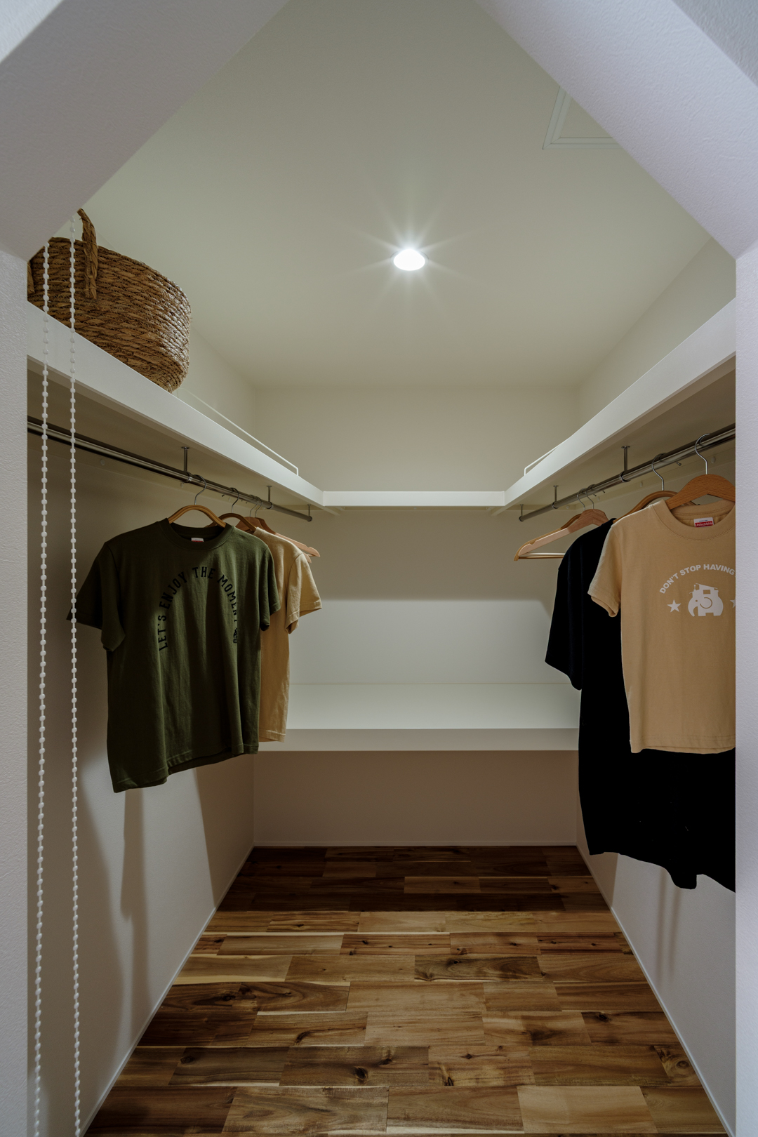 可愛すぎないカワイイ平屋 32坪のウォークスルークローゼットがある海外風ハウス