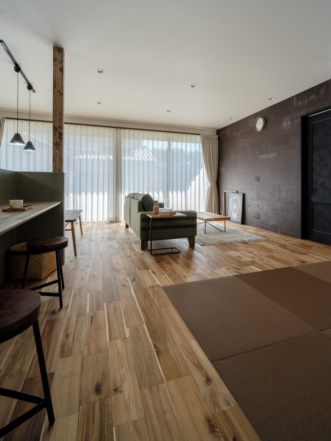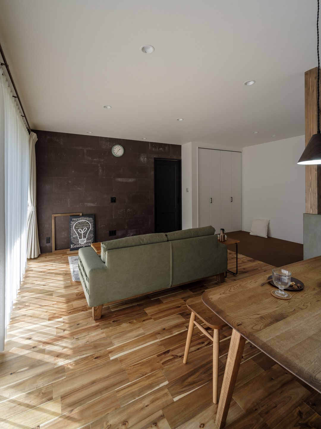 LUXE HOUSE「無垢と勾配天井が魅せる、20.5帖の上質LDK」