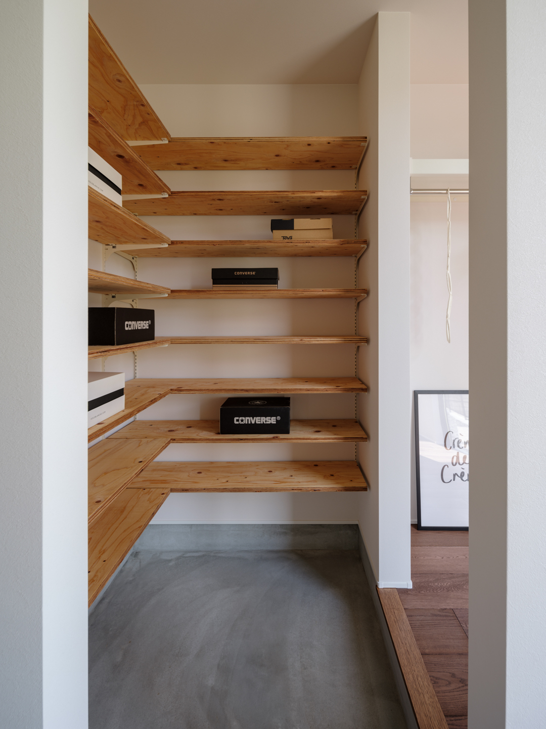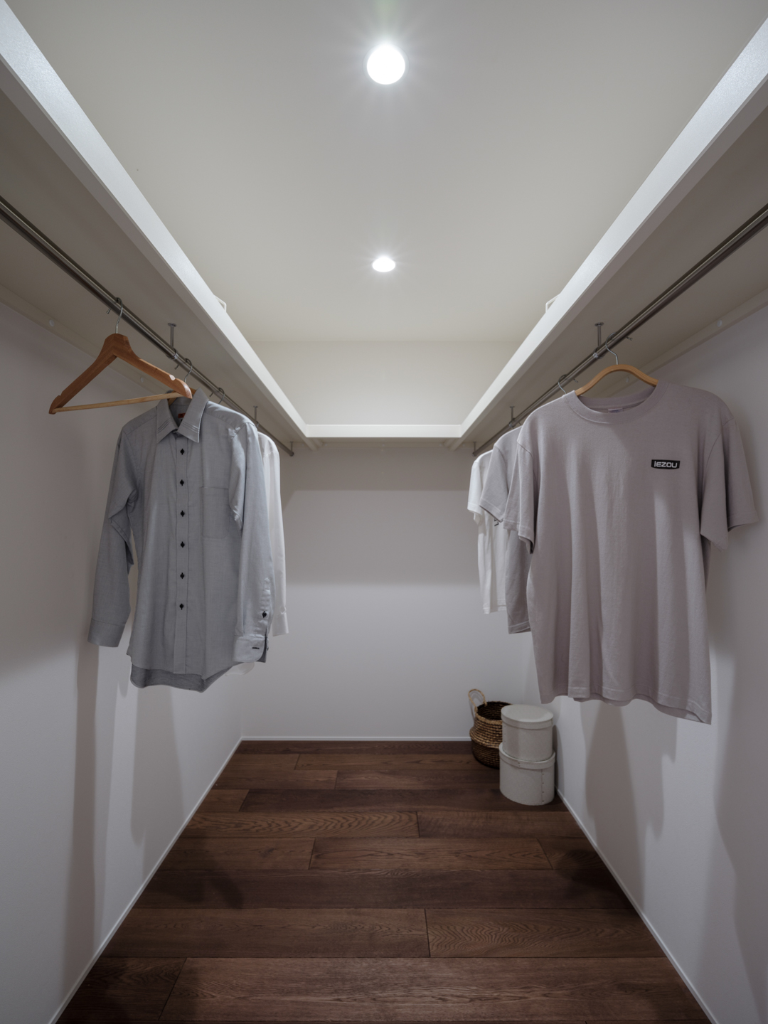 可愛すぎないカワイイ平屋 32坪のウォークスルークローゼットがある海外風ハウス