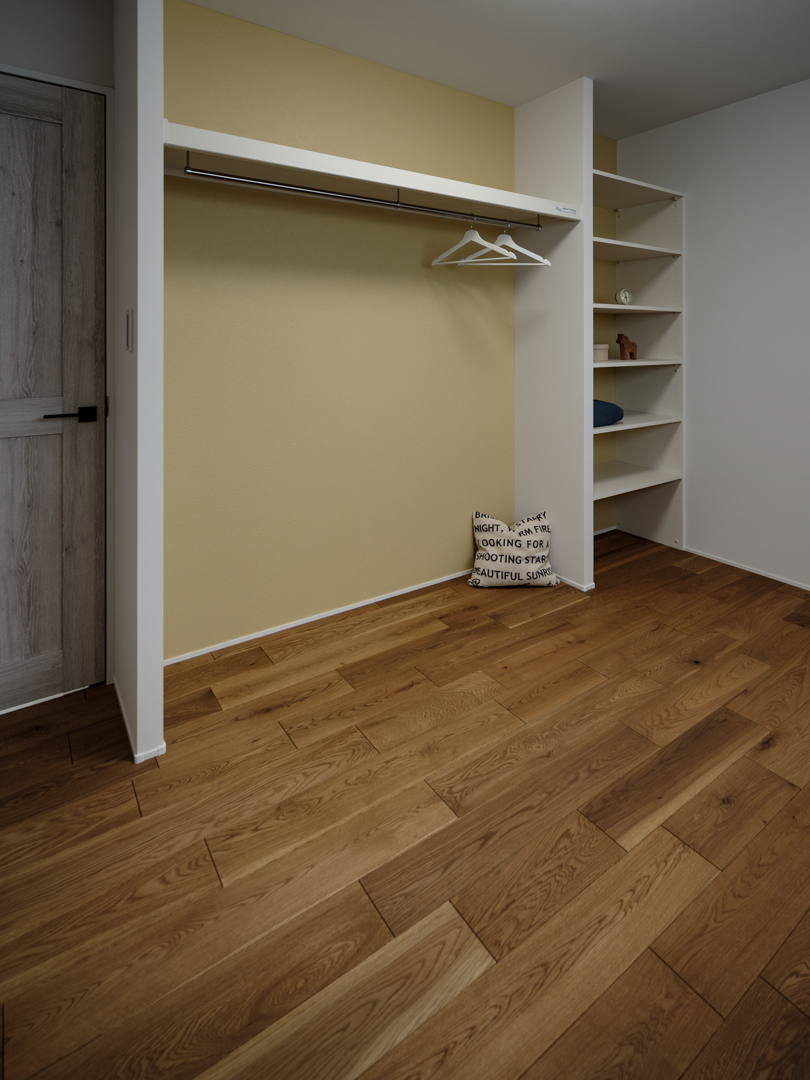 可愛すぎないカワイイ平屋 32坪のウォークスルークローゼットがある海外風ハウス